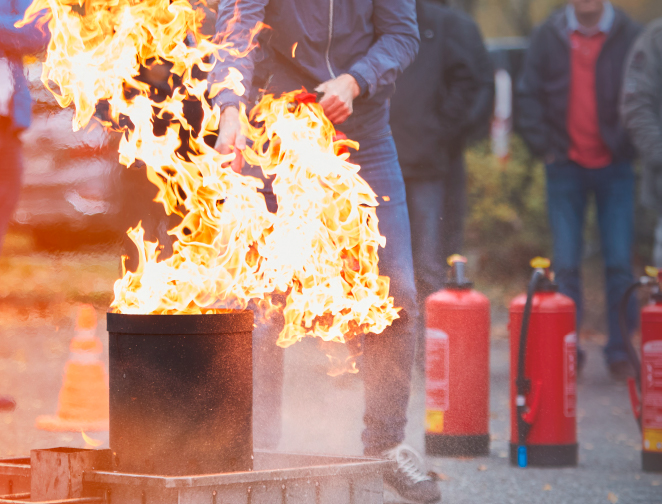 • Schulungen für Mitarbeitende und Brandschutzhelfer – Umgang mit Feuerlöschern und Verhalten im Brandfall